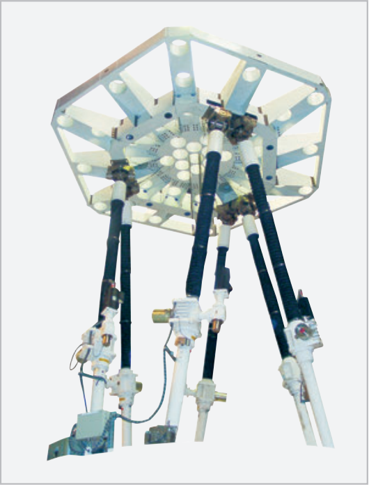 應(yīng)用圖例:  VERTEX 天線技術(shù)有限公司射電天文接收器并聯(lián)運動驅(qū)動系統(tǒng), 由6根HSE高性能蝸桿絲杠升降機組成,升降高度3500mm。該系統(tǒng)用于同一平臺上 數(shù)個射電望遠鏡的定位。