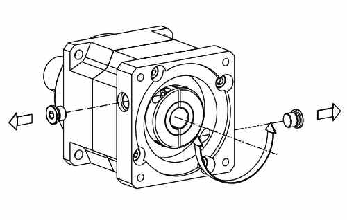 松開行星減速機(jī)法蘭中的密封螺釘(或取下塞子)。然后轉(zhuǎn)動夾緊環(huán),使裝置在行星減速機(jī)夾緊環(huán)中的螺栓的頭部坐落剛?cè)∠氯雍髽?gòu)成的孔的前面。